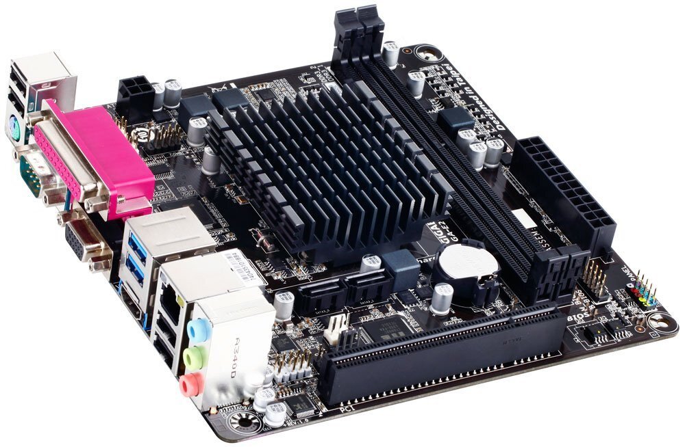 The GIGABYTE E2100N Mini-ITX motherboard is a fully integrated PC motherboard featuring the AMD Dual Core E1-Series APU with Radeon HD 8210 graphics (DX11). Designed for compact, small form factor PC systems and devices, the GIGABYTE E2100N is entirely fanless, making it ideal for always-on, mission critical systems, as well as noise-sensitive digital entertainment systems. Connectivity includes digital and analog display outputs via HDMI and VGA ports, while the HDMI port offers native support for 4K resolution displays.