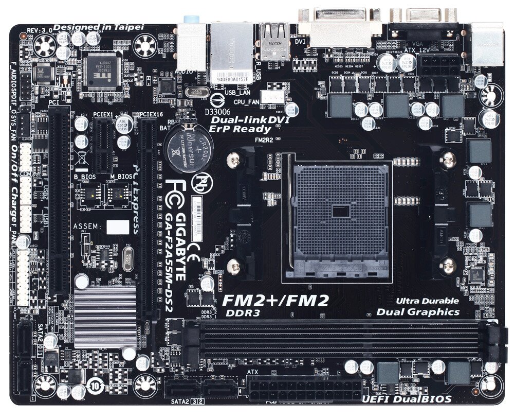 GIGABYTE FM2+ series motherboards based on AMD A55 chipset and feature the new FM2+ APU socket, and are designed to get the most from forthcoming Kaveri AMD APUs, while preserving compatibility for current AMD FM2 APUs. FM2+ AMD APUs offer native support for 8 GT/s PCI Express gen 3.0 as well as DX11.1 support integrating the high performance 'Steamroller' core. AMD socket FM2+ APUs also offer native support for 4K resolution displays on HDMI port.