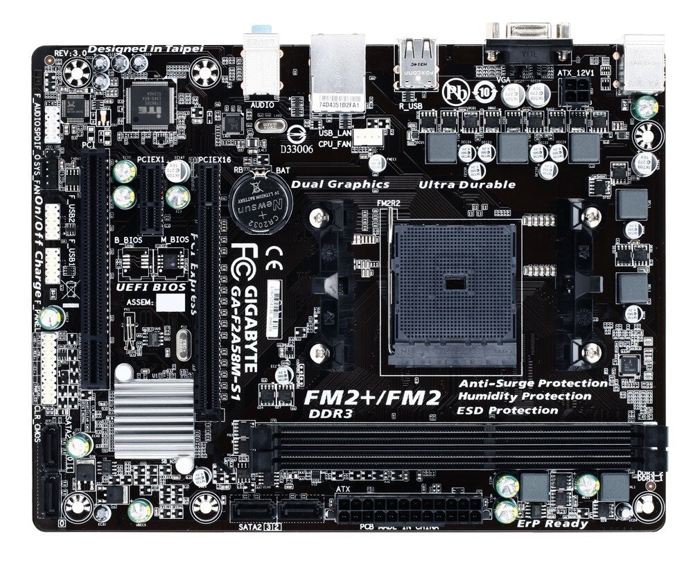 GIGABYTE FM2+ series motherboards based on AMD A58 chipset and feature the new FM2+ APU socket, and are designed to get the most from forthcoming Kaveri AMD APUs, while preserving compatibility for current AMD FM2 APUs. FM2+ AMD APUs offer native support for 8 GT/s PCI Express gen 3.0 as well as DX11.1 support integrating the high performance 'Steamroller' core.