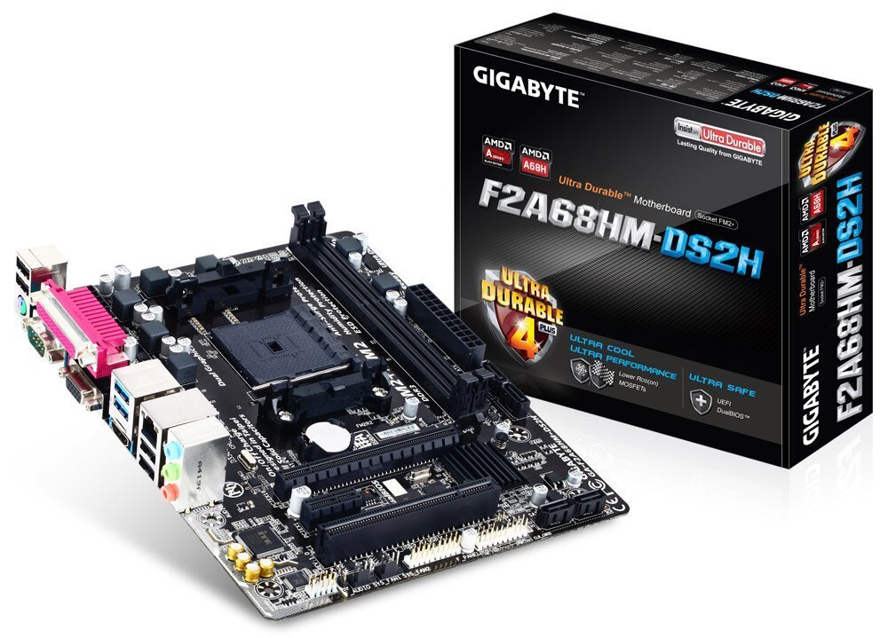 GIGABYTE FM2+ series motherboards feature AMD the latest FM2+ socket, and are designed to get the most from forthcoming AMD Kaveri APUs, while preserving compatibility for current AMD FM2 APUs. AMD FM2+ APUs offer native support for 8 GT/s PCI Express gen 3.0 as well as DX11.1 support integrating the high performance 'Steamroller' core. Based on AMD A68H chipset, native USB3.0 and SATA3 ports support up to 5Gbps and 6Gbps of data transfer speeds, delivering the GIGABYTE FM2+ series motherboards most stable and high efficiency working experience via the GIGABYTE Ultra Durable technologies.
