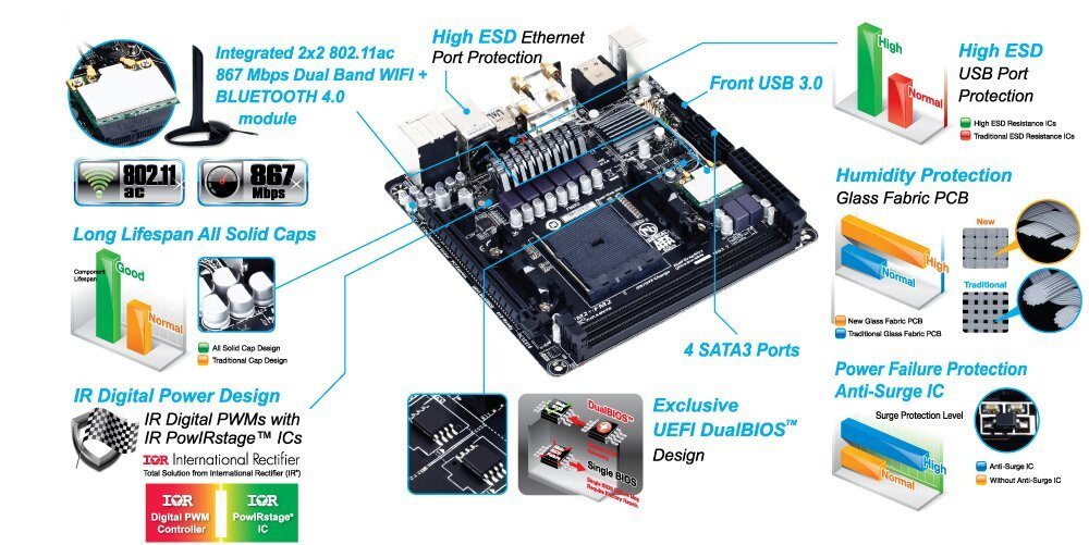 • Gigabyte GA-F2A88XN-WIFI Motherboard