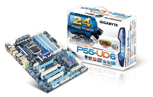 The GA-P55-UD6 features the revolutionary 24 phase power VRM design that provides the very best power delivery to the CPU, giving extreme users unparalleled overclocking ability and the lowest temperatures to reach maximum performance levels. With support for NVIDIA SLI and ATI CorssFireX technology, the GA-P55-UD6 also delivers powerful graphics performance.
