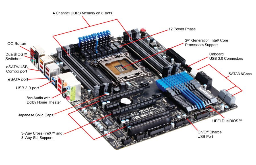 GIGABYTE X79 series motherboards feature GIGABYTE 333 Onboard Acceleration , a range of the latest technologies that are designed help speed up data transfer, including SuperSpeed USB 3.0 technology, SATA Revision 3.0 (6Gbps) technology and an unprecedented 3x USB power boost on all USB ports for more power hungry USB devices.