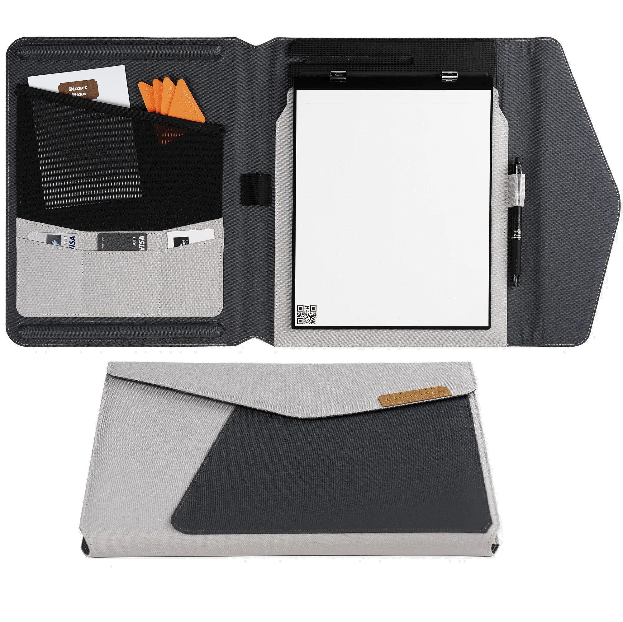 The official folio for the Rocketbook Orbit provides the style and protection it deserves with our uniquely designed, 100% recycled covers. The Orbit Capsule is equipped with a freshly designed metal clasp, pen dock, inside pockets, and multiple card slots to hold all your mission-critical supplies. The lightweight, sleek, and durable construction of the Orbit Capsule ensures your notes are protected for even the wildest of spacewalks.