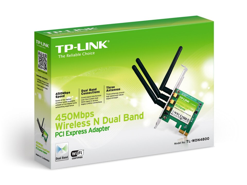 TP-LINK’s 450Mbps Wireless N Dual Band PCI Express Adapter, TL-WDN4800 allows you to connect a desktop computer to a wireless network and access a high-speed wireless network connection. Complying with IEEE 802.11a/b/g/n, the device can use the 2.4GHz or 5GHz channels and provide wireless speeds of up to 450Mbps which is ideal for users seeking a highly robust, bandwidth intensive wireless networking experience, particularly with HD video streaming and online gaming.