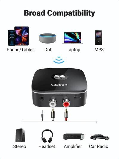 Stable and Dual Connection: This RCA to Bluetooth transmitter is compatible with RCA or 3.5mm devices, turning them into Bluetooth-enabled devices, and freely switching audio output devices according to your preference.